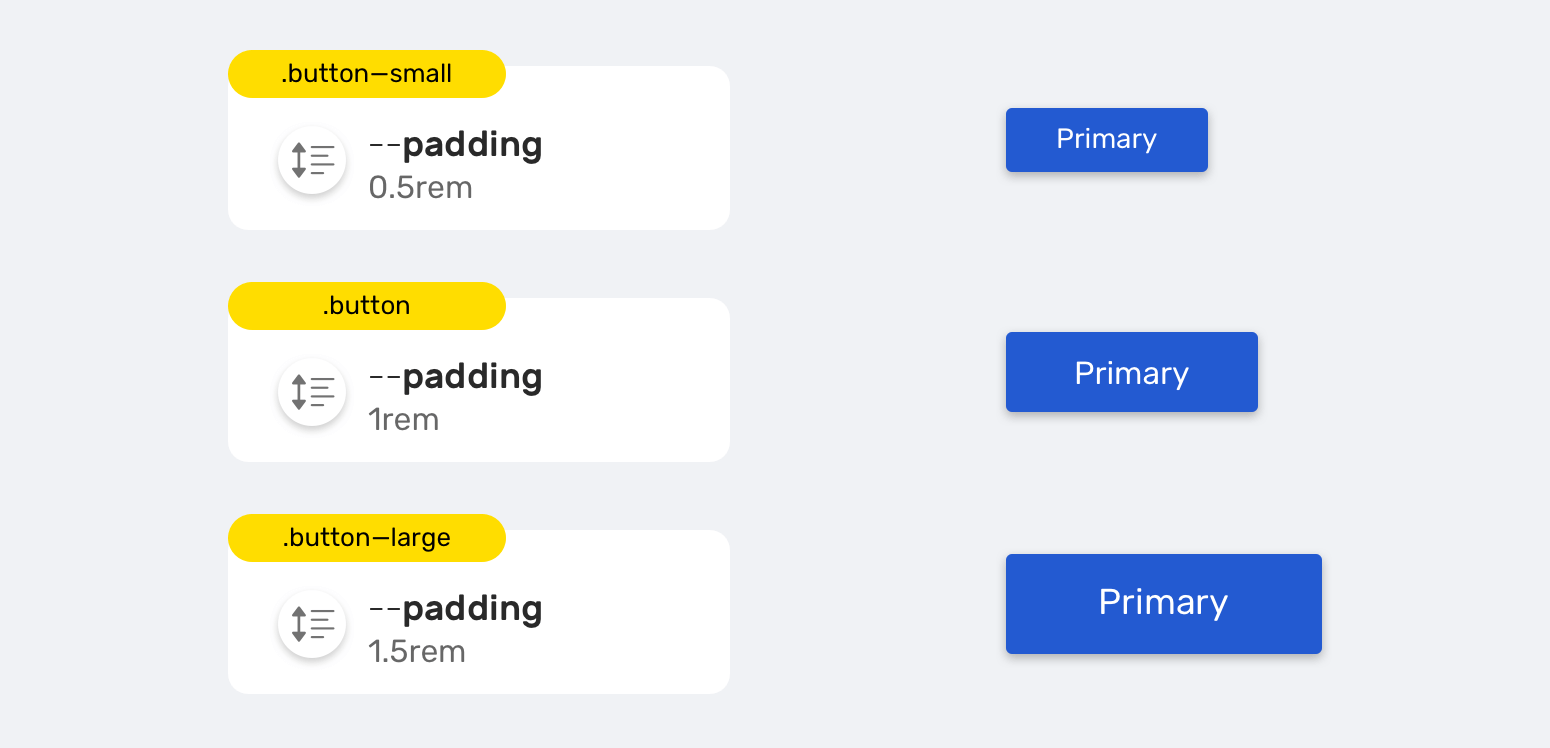 It’s common to have multiple sizes for a button in a design system. Usually, a button can have three sizes (Small, normal, large). It hasn’t been easier to implement this with CSS variables.