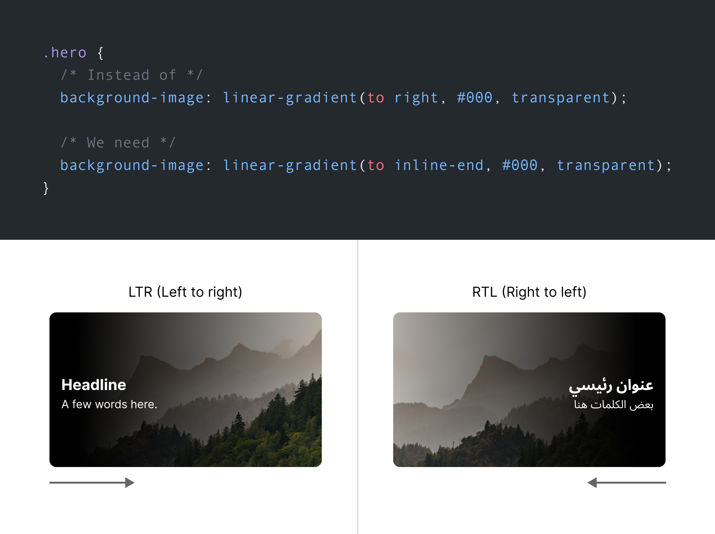 CSS logical properties are great for building multilingual websites. Since Arabic is my native language, I build lots of right-to-left experience, and each time I use logical properties, I wish we have them in gradients.