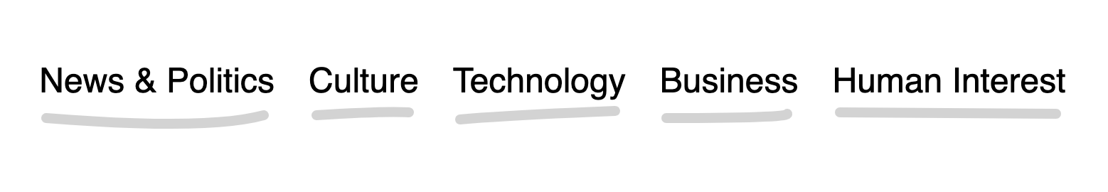I thought about making curveYMax value dynamic with respect to the link’s width. If the link was long such as “Human Interest”, the value if curveYMax will be greater. If the link was short such as “Works”, the curveYMax value will be smaller.