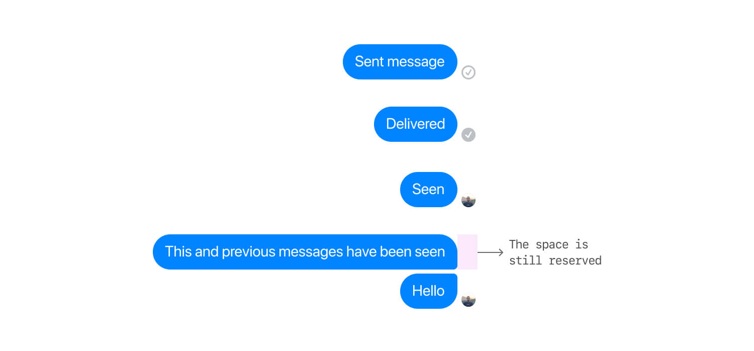 If you use Facebook, you might probably notice how the seen badge works per message. When you send a message and the person sees it, the seen avatar will be there. Once you send another message, the status will become empty but its place will stay reserved.