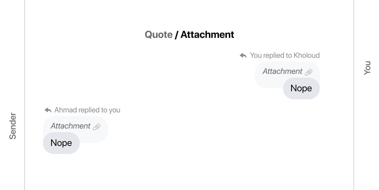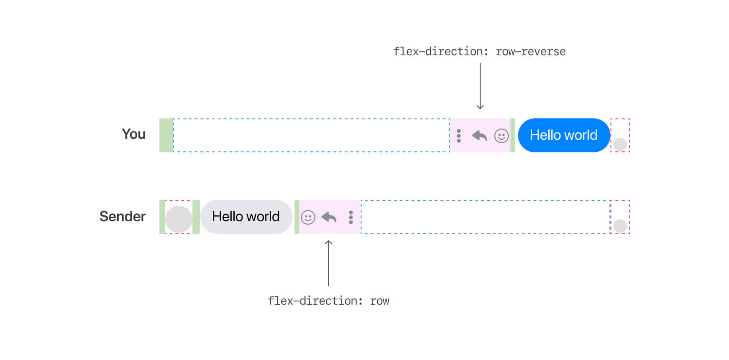 The above anatomy is for a message viewed as you. If you receive a message, it will be flipped. To avoid building a different component for the flipped message, here is what I found.