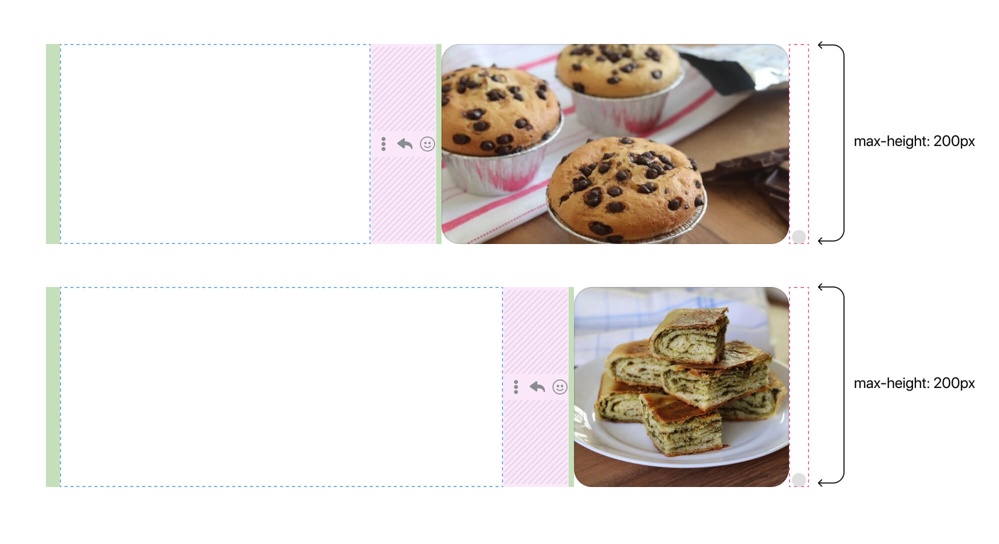 That way, the child element will always be at the bottom, even if the message height is too large. Having this is important in cases like writing a very long message, adding a new line, or sending an image.