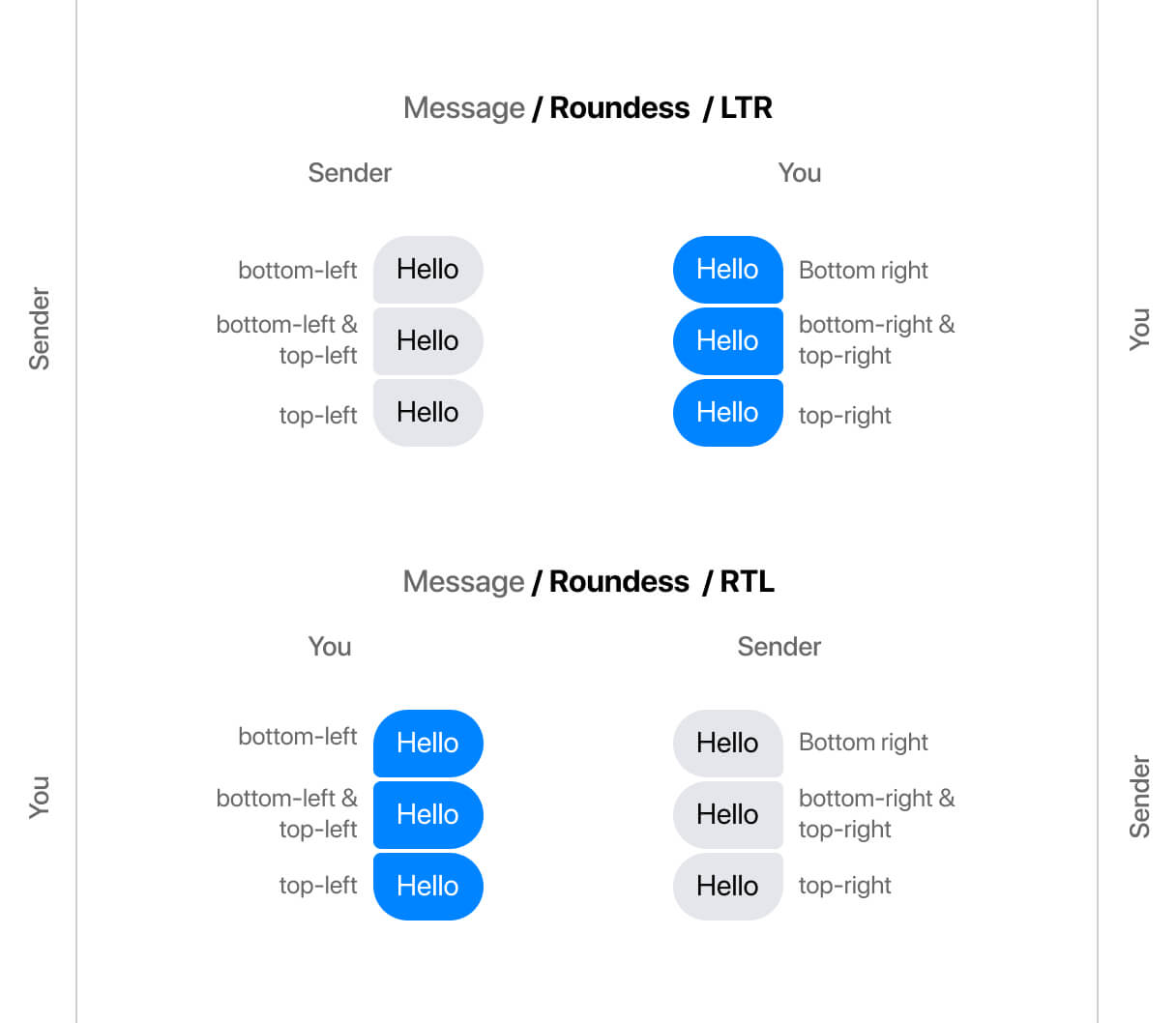With that, here is a figure that shows how the message outer and inner container look on LTR vs RTL layouts.