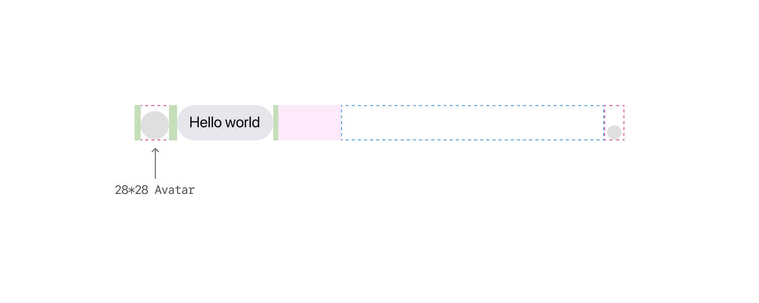By default, the avatar wrapper has horizontal padding to reserve a space for the avatar. It’s empty in case you are sending a message, while it will have the user avatar in case you get a message from someone.