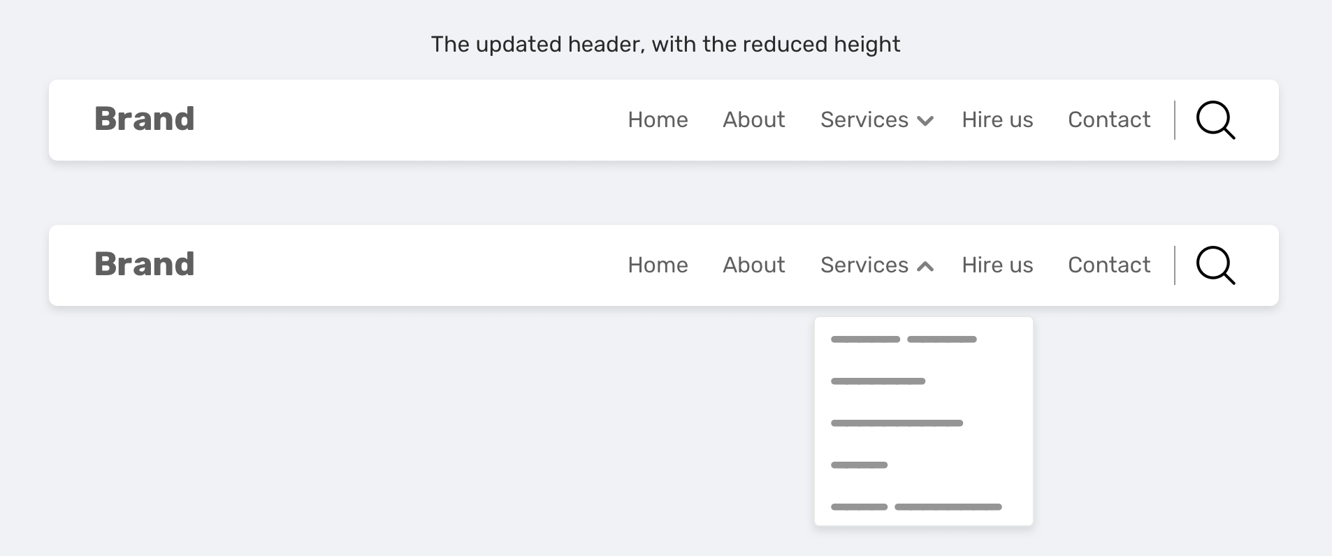 The dropdown is positioned 40px from the top edge of its parent nav item. While there are no problems with this, it can cause side effects in the future. Let’s suppose that you got a request to make the header height smaller. Depending on how you implemented the navigation, you either need to decrease the vertical padding of the navigation item or decrease the header height.