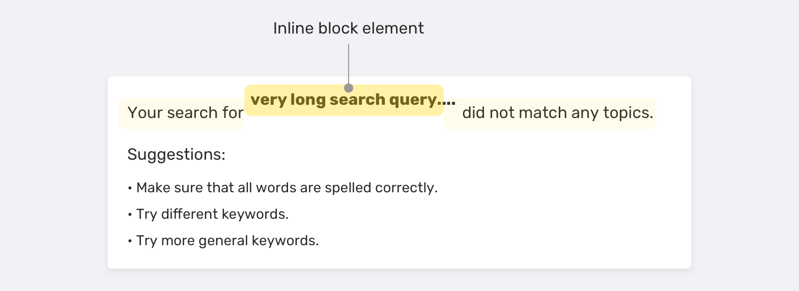In a search results page, the query string could range from one word to a sentence. For some reason, the design below should have the string constrained with a specific width. To do that, the author added the following CSS