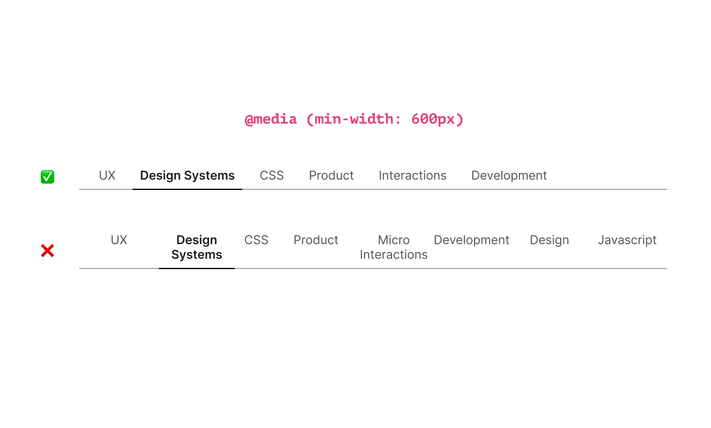 We can use flexbox to lay out a tabs component. On mobile, I want the design to switch to a list instead of tabs. The trick is to know when the tab items are wrapped.