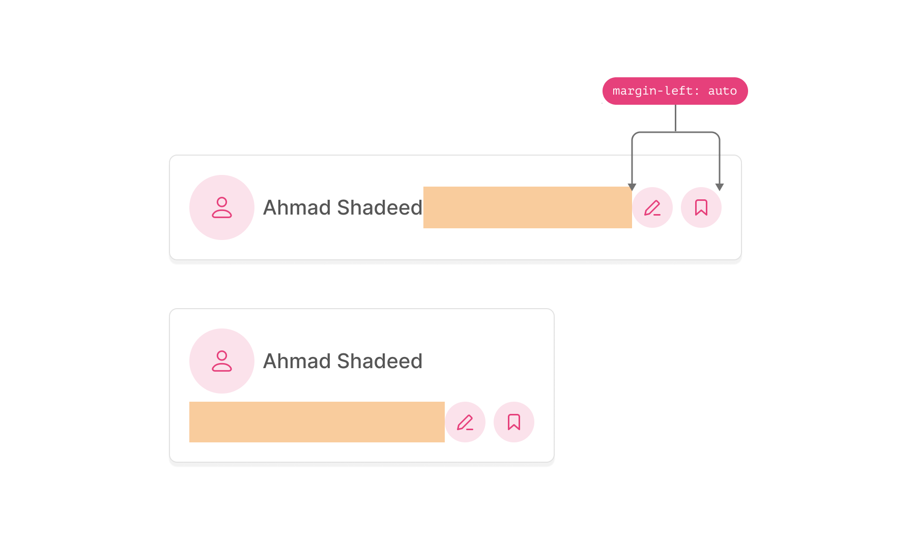 Auto margins and flexbox are useful. We can use it to push a flex item to the far end of its container.