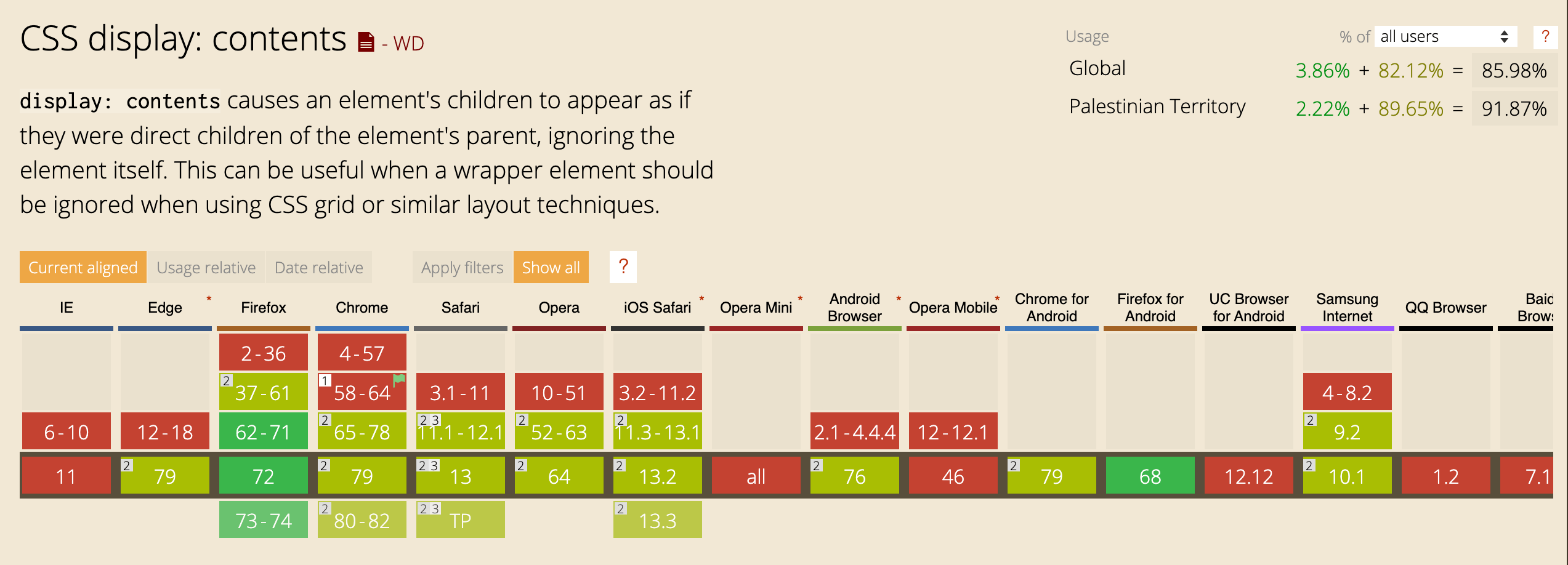 a magical new display value that essentially makes the container disappear, making the child elements children of the element the next level up in the DOM.