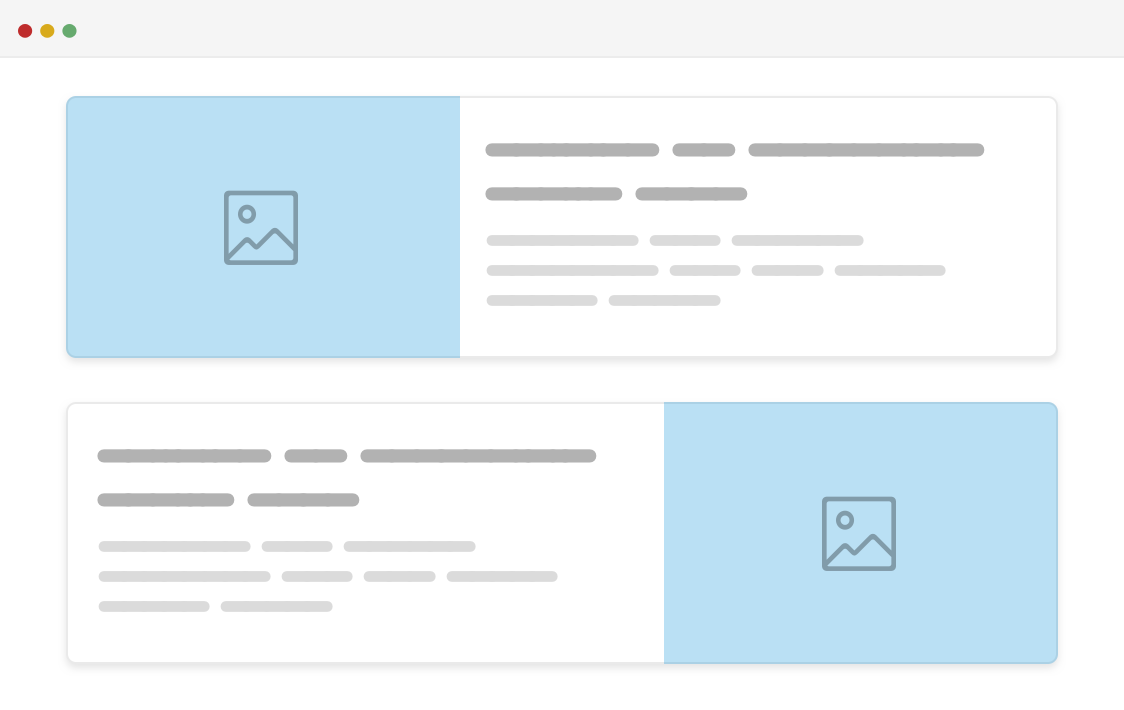 The media component is a good use case for grid areas. Let’s say that we want to switch the placement of the media and the content. Grid area is perfect for that.
