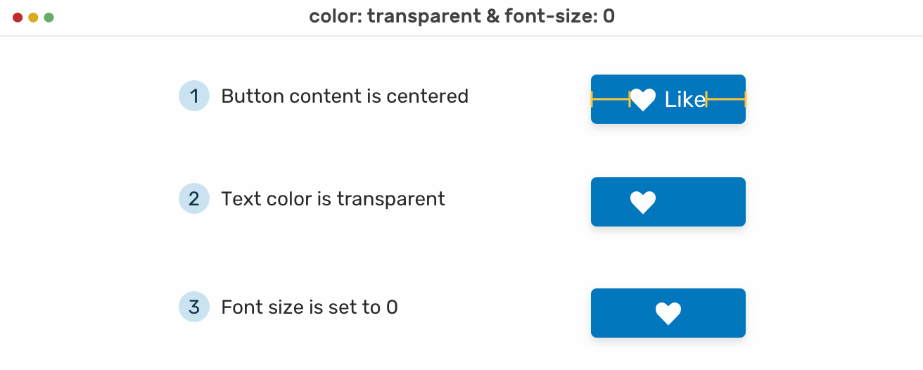 Our goal is to hide the text in an accessible way. To do that, I added the following CSS: