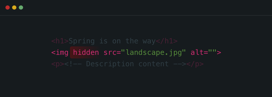 We have a title, a figure, and a description. The figure should be only shown if the viewport width is larger than 400px. I added the hidden attribute to the <img> element.