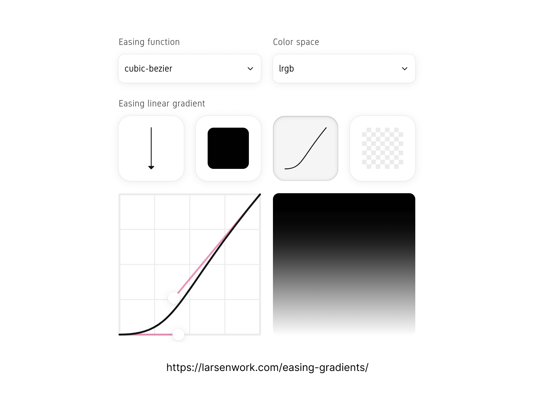 With Andreas’s tool, all we need to do is to enter the start and end color stops, then control the cubic-bezier as we see fit.