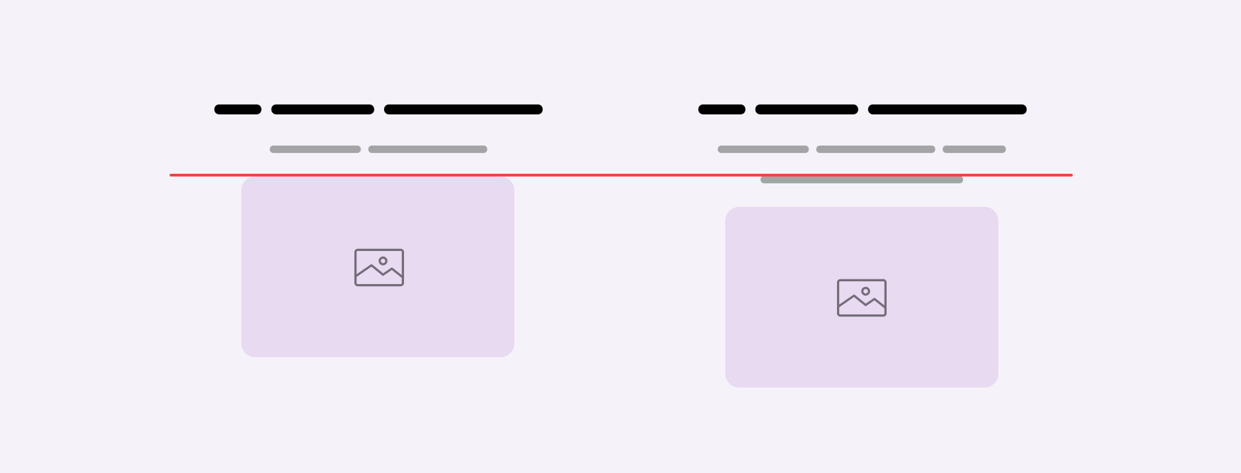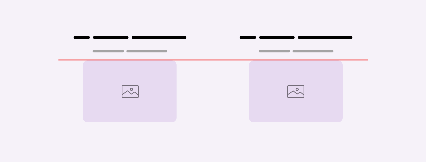 Let’s suppose that we have the following design. There is a title, description, and image. When both the title and description text are equal in length, both images will line up correctly.
