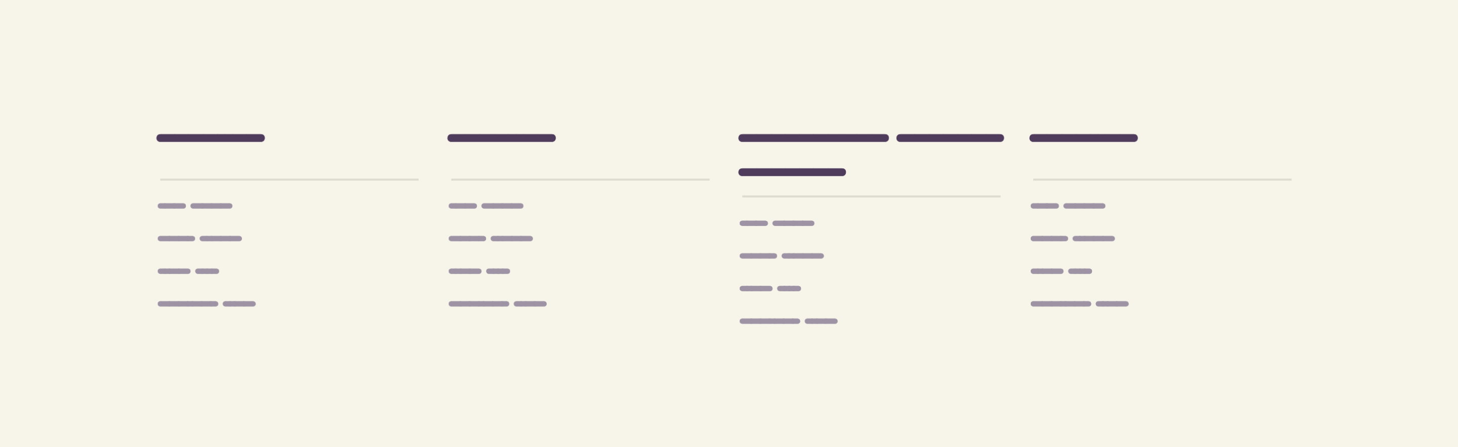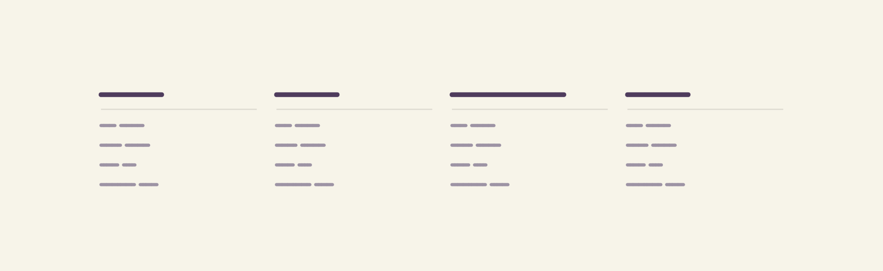 We want to divide the content into three rows and make sure they’re aligned with each other. Let’s suppose that we have the following markup.