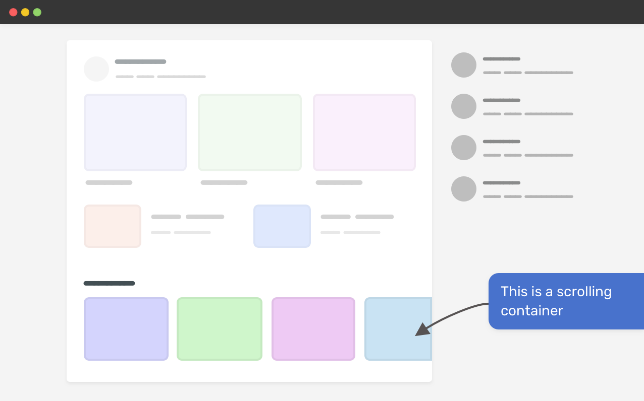 To give you a bit of context, here is the layout that I’m trying to achieve. Notice that there is a scrolling container at the end of the main section.