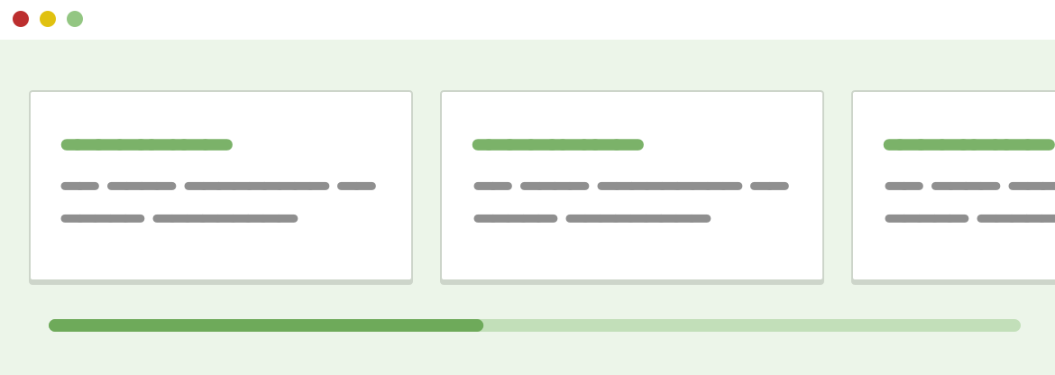 In the mockup above, we have cards that laid out horizontally, and there is a scrollbar that allows us to scroll and reveal more content. To implement that, we will need to do the following: