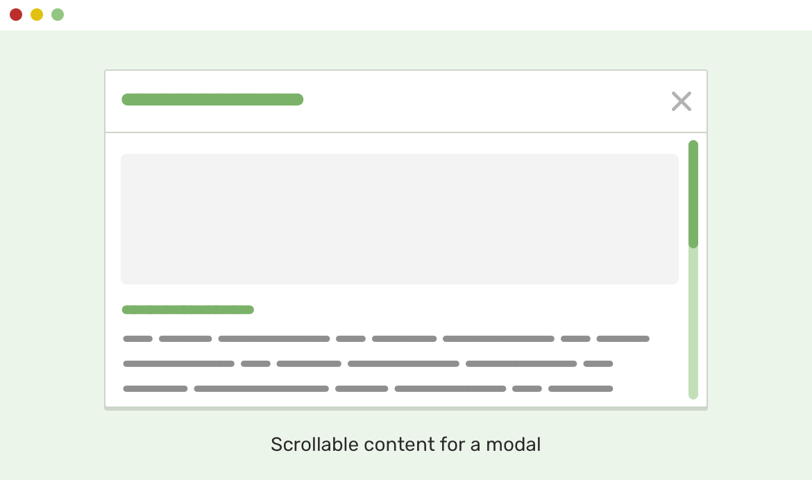 When the modal content is too long, we can easily make the area scrollable. To accomplish that, we should have the following: