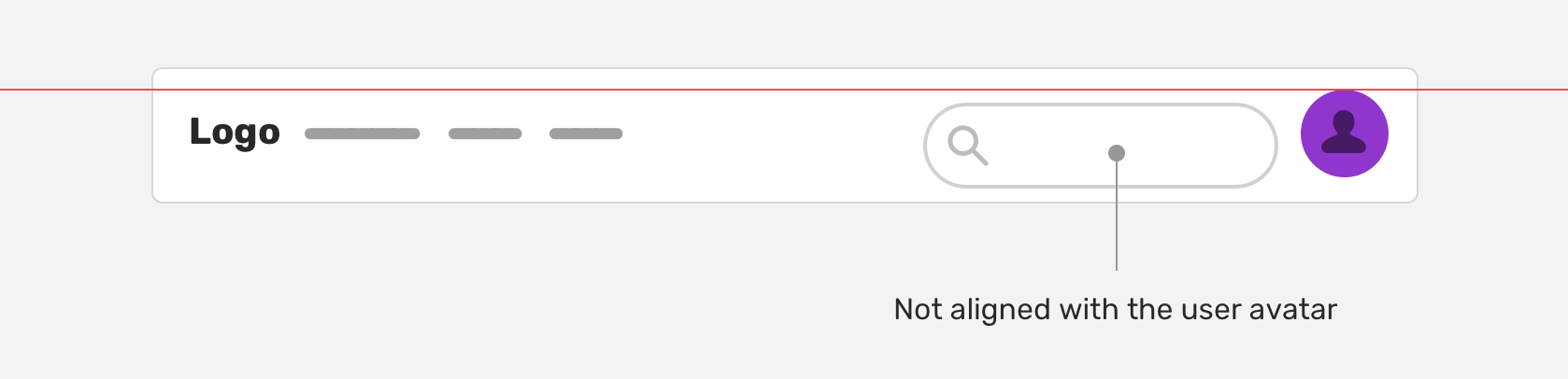 Notice how the search input is not aligned with the user avatar. The reason could be an unneeded margin or padding. Whatever the reason, not everyone can notice such issues.