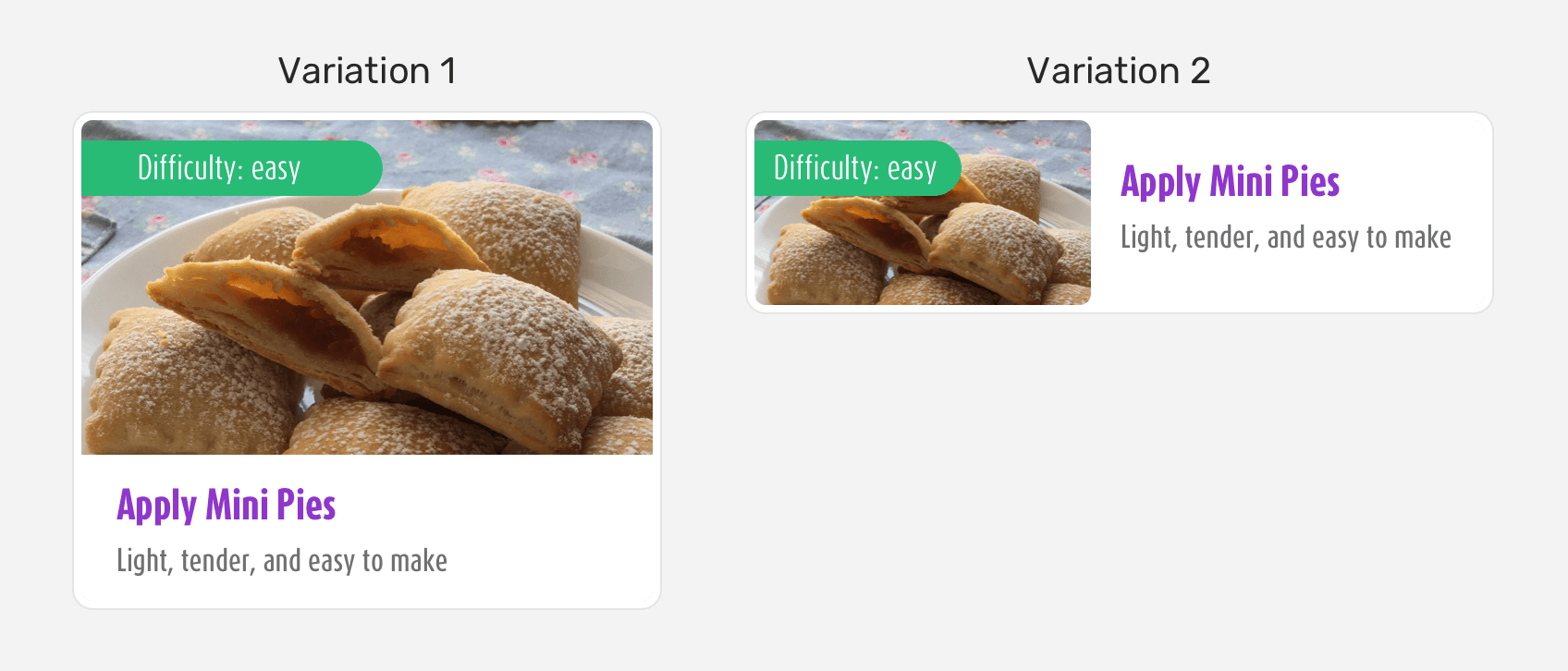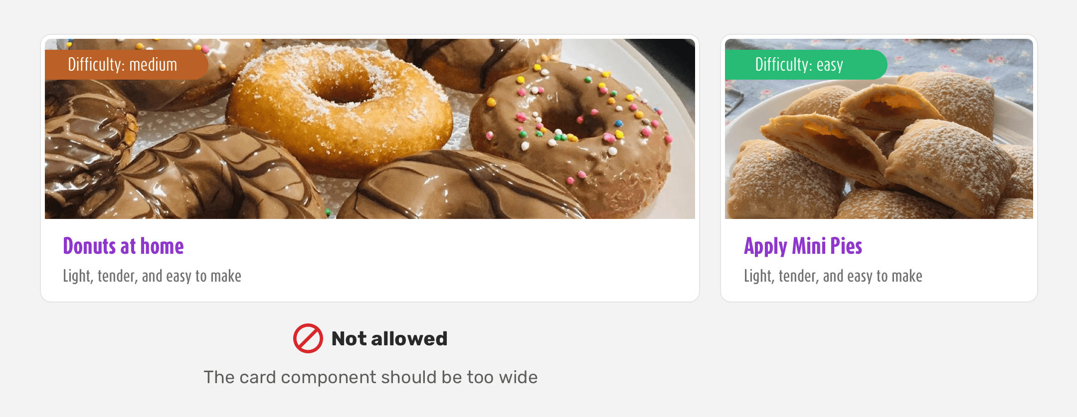 When the card component became too wide, the image inherited that, too. For a cooking website, the recipe image is very important and should be clear with most of its details. When the card is too wide, some details might be cropped or lost. It might not be the case for that component at all, but my point is that when a designer works on website design, there should be limitations. By doing so, we can set expectations for the implemented result without too many surprises, you know.