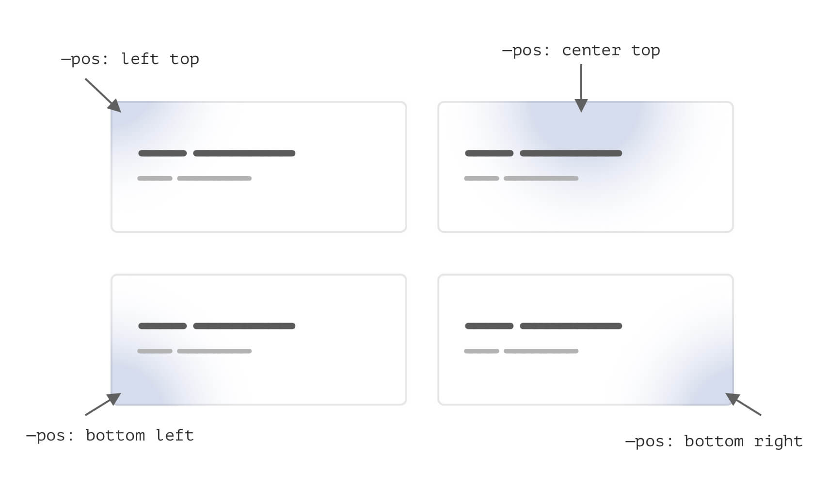 In regards to the gradient angle, using CSS variables with radial gradient is very handy to tweak the position. In the following example, the gradient’s position has been changed by only altering the --pos variable.