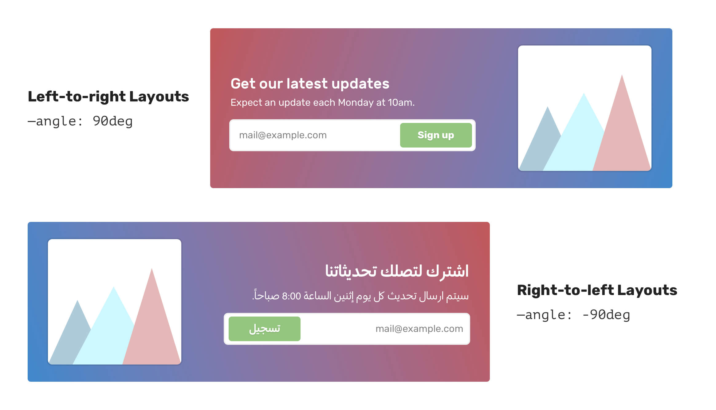 This can also be related to building multilingual layouts. A gradient angle can be 45deg by default, and it needs to be -45deg for RTL layouts.