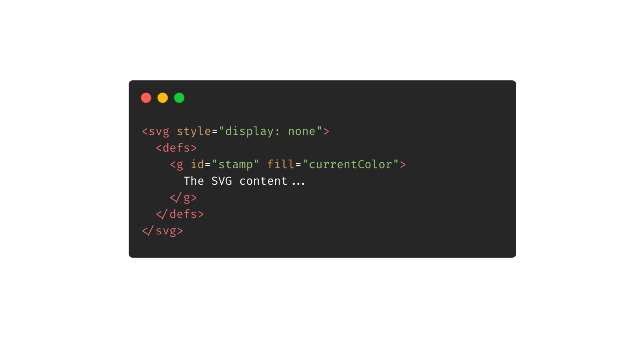 Then, I exported the SVG and placed the content of it inside <defs> so it can be easy to reuse it. Notice that I added currentColor! This is the magic value that will make it work.