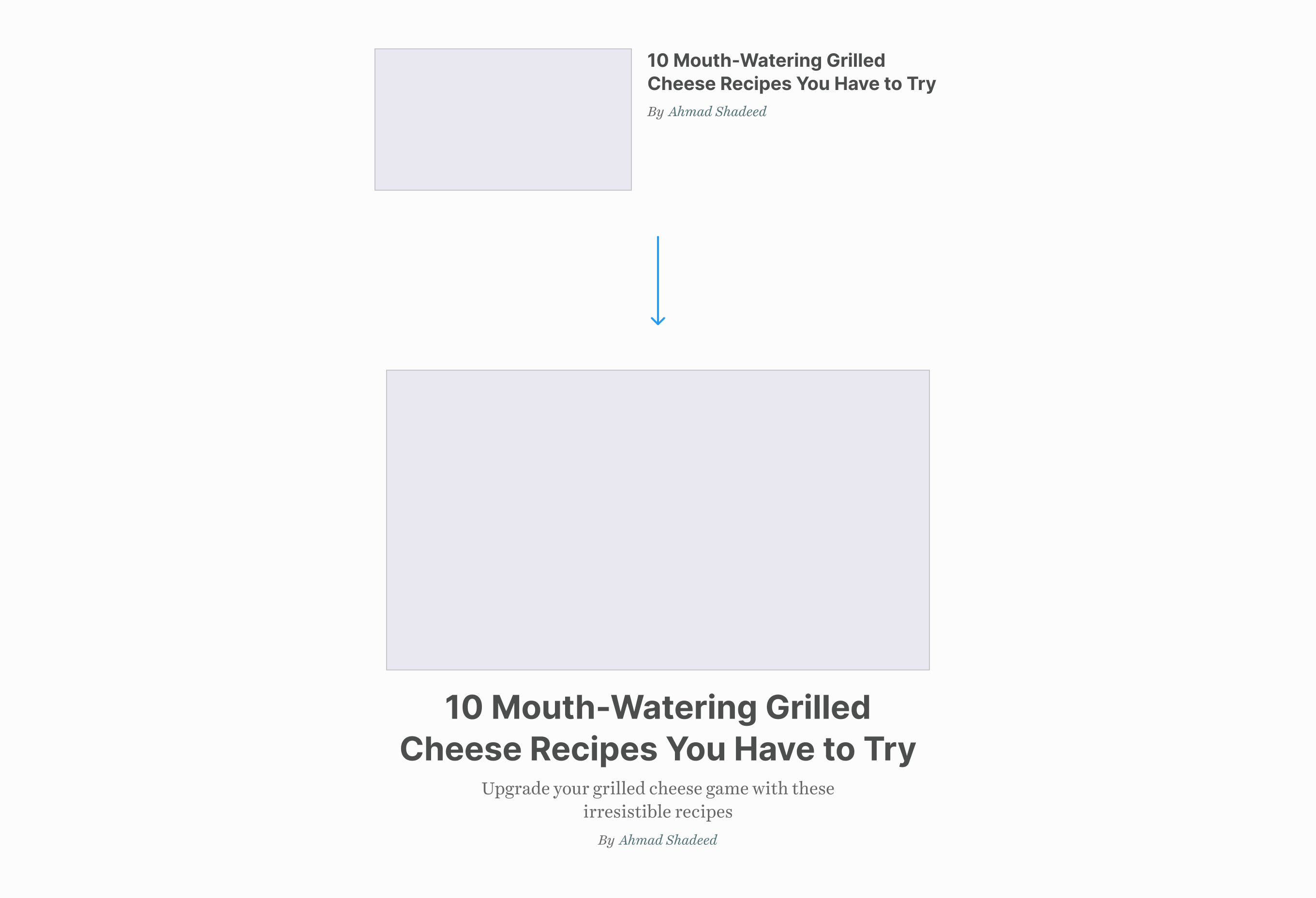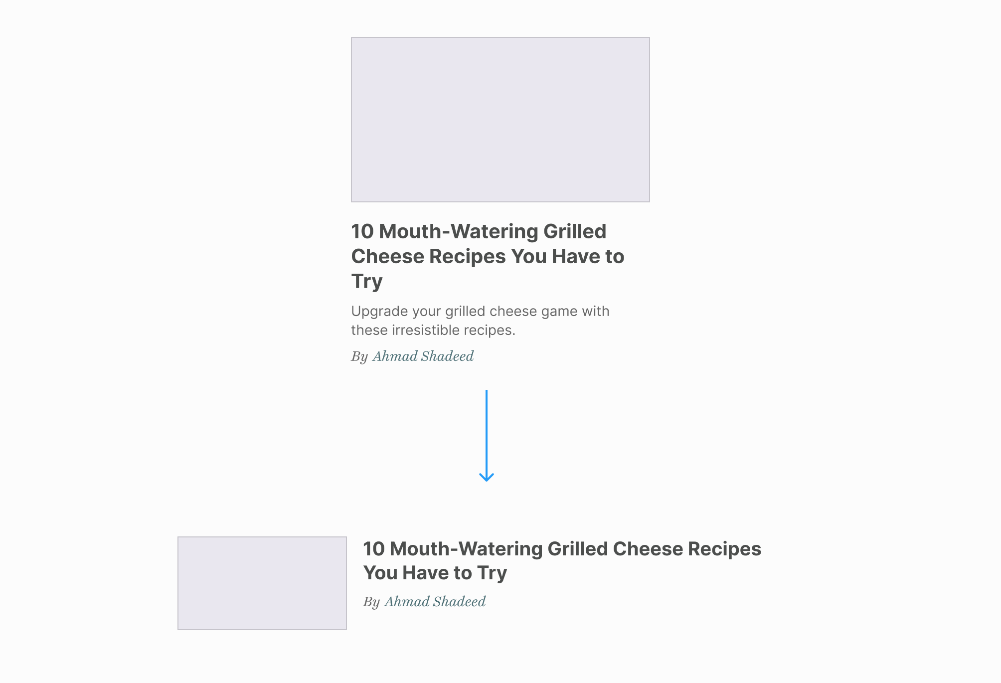 - The featured article will become horizontal, but with a larger thumbnail to differentiate it from the rest of the articles.