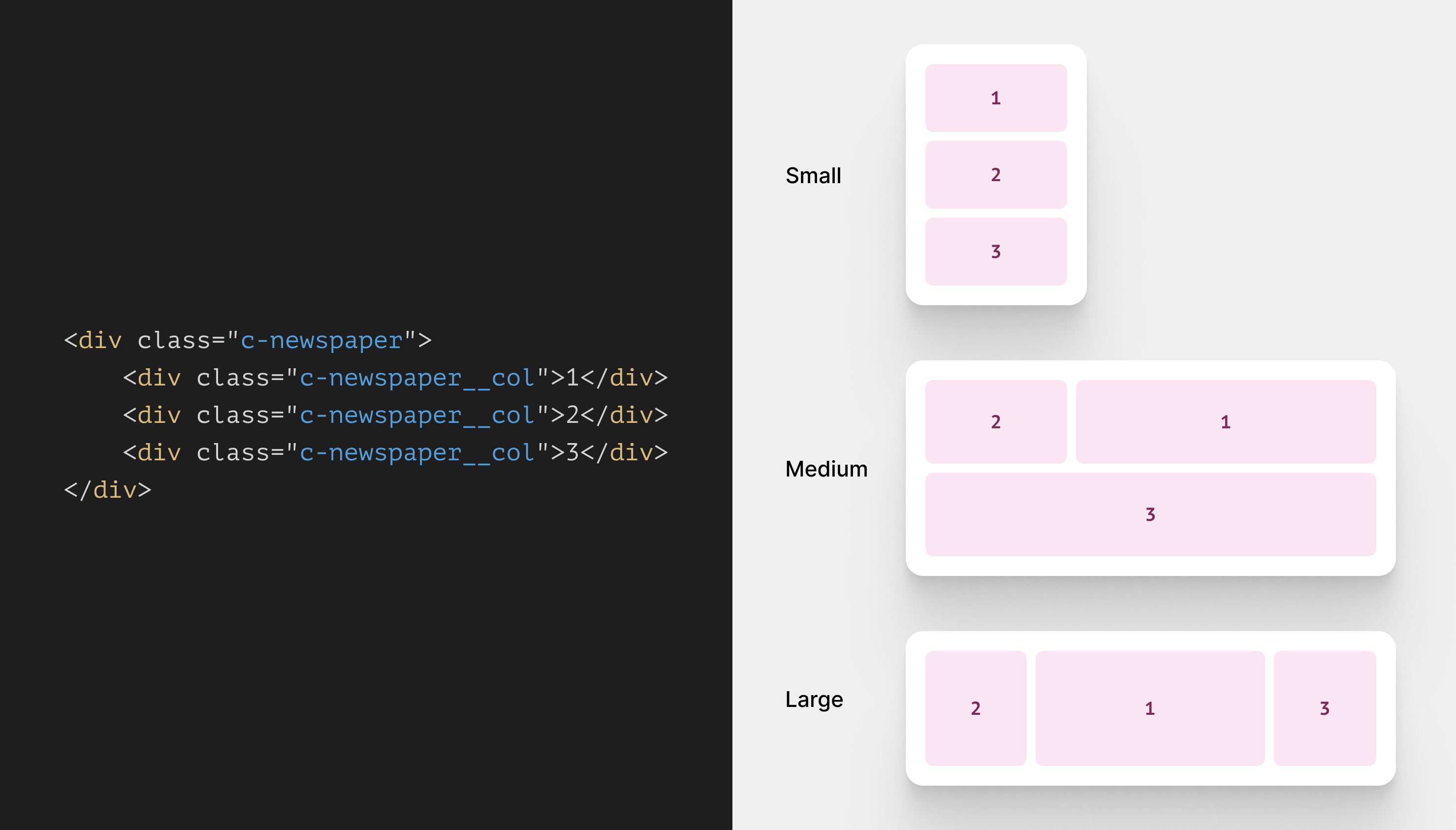 I added numbers for illustrating how each layout column will be reordered on different viewport sizes.