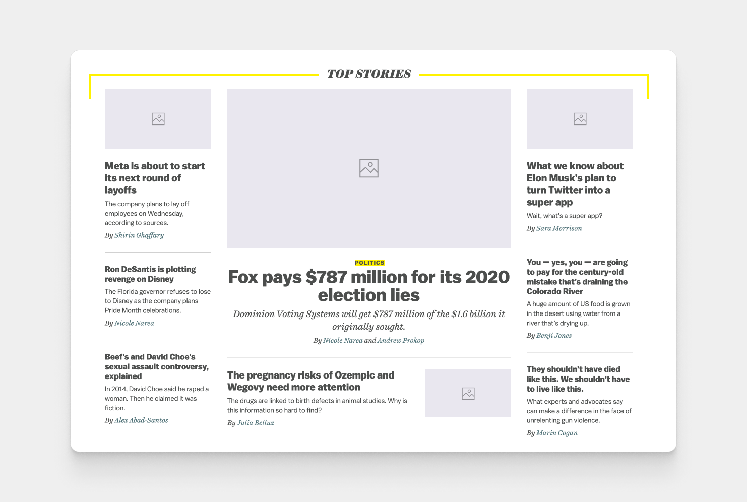 In this article, I will rethink how to build the featured news section on Vox.com and try to see if modern CSS will be helpful or not. For example, do we need to use container queries? Or fluid sizing? That’s the goal of this article. It’s a journey as I think aloud about building a layout that seems simple.