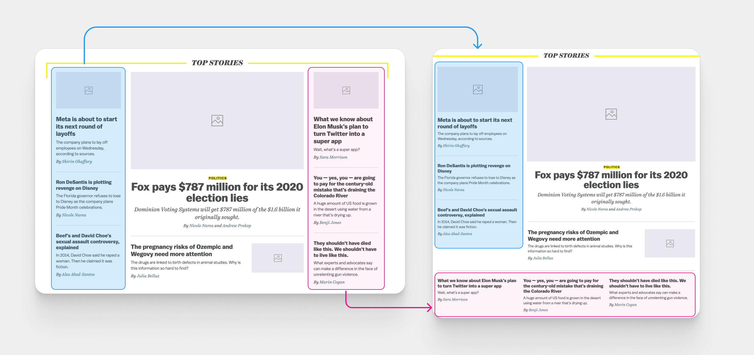 The vox.com styles for the columns are built with the order property to reposition the columns on different sizes.