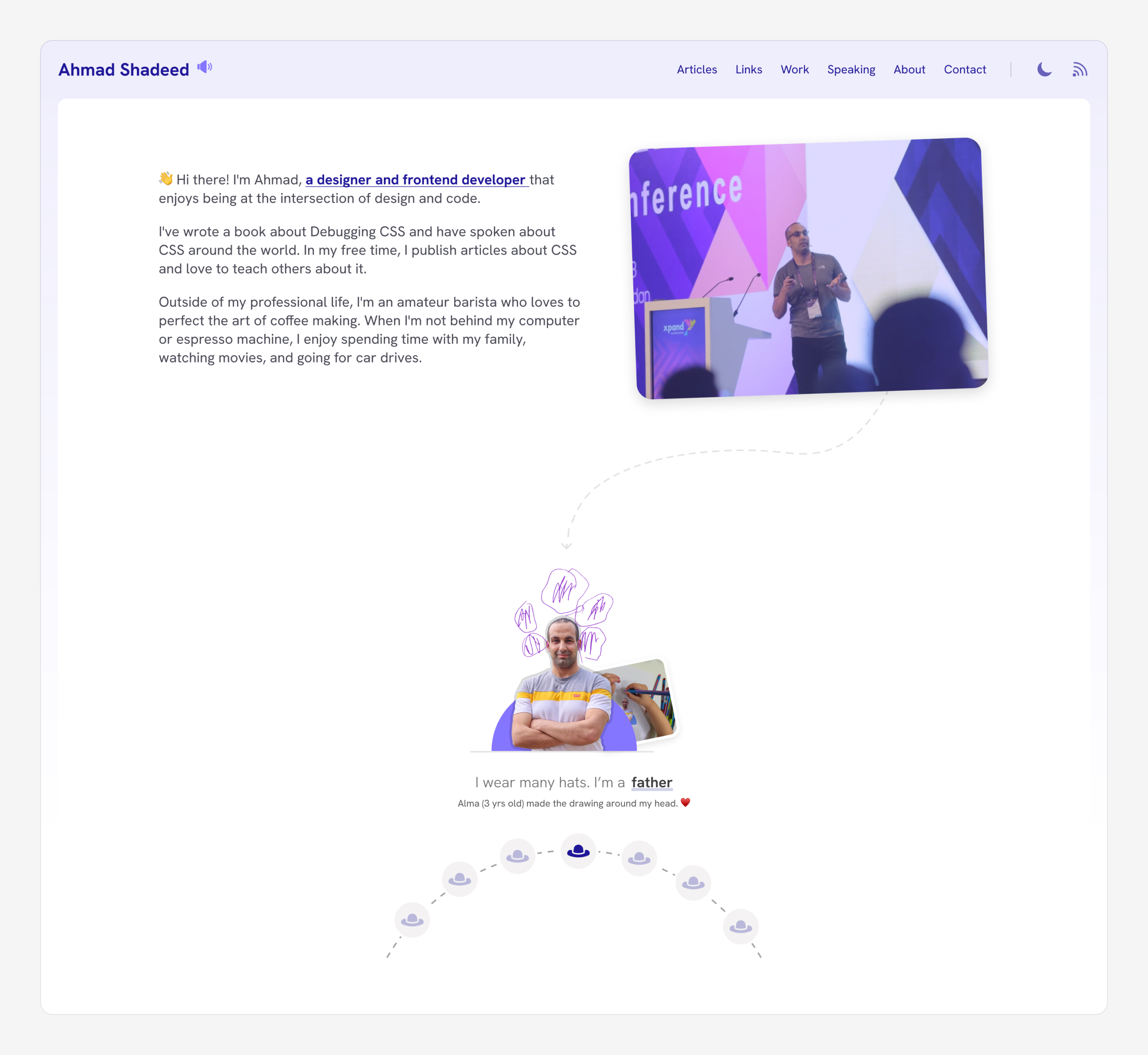 I already have Framer Motion on my blog as I use it for my interactive articles. The hats section is a React component that uses Framer Motion.