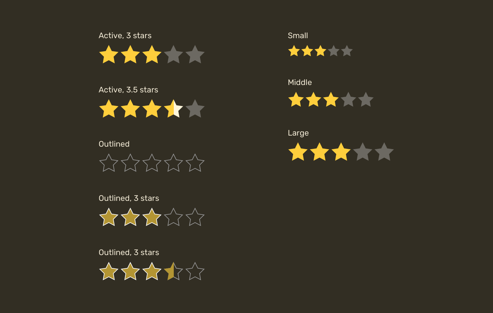 For websites and platforms that provide users with content or reviews, it’s important to include a star rating. Recently, I needed to implement a star rating component for a project and the requirements needed were as below: