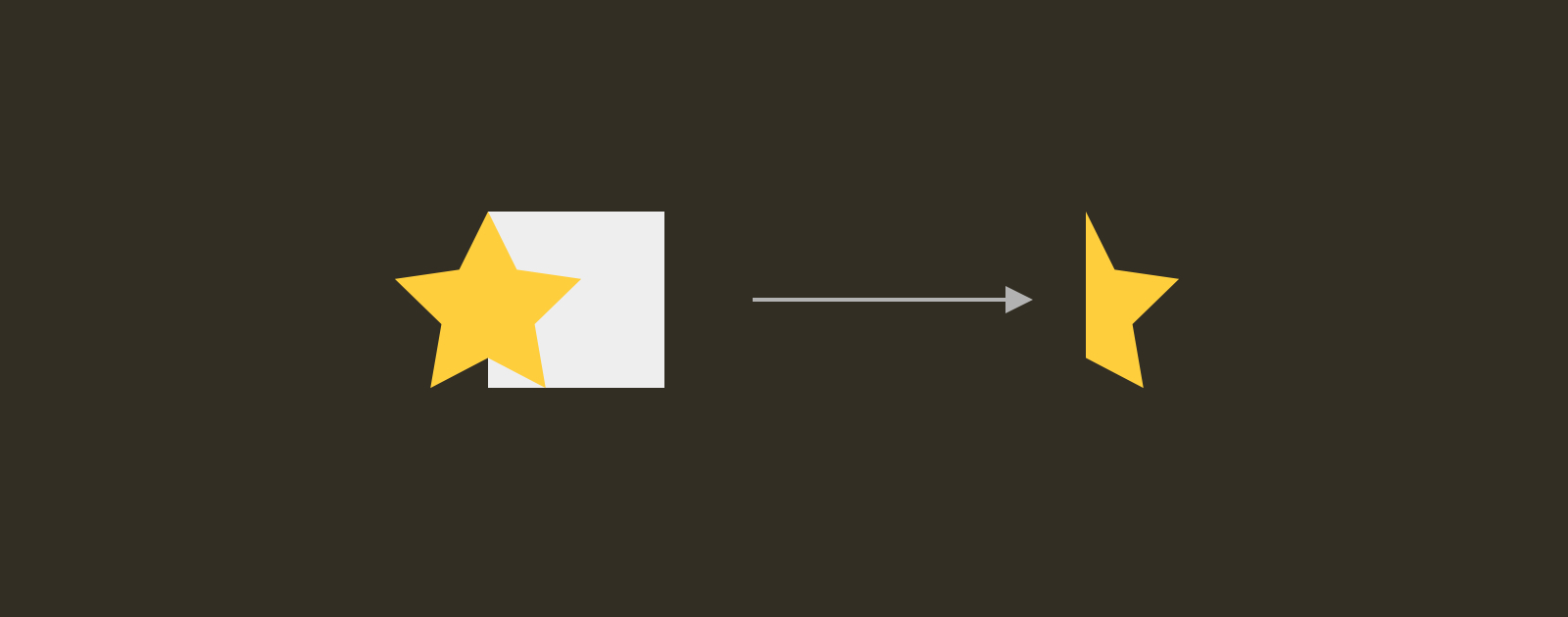 In the figure above, we have a square and a star. What we want is the intersection of them, which will result in half a star.
