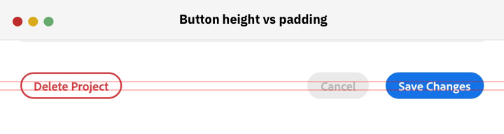 While researching, I noticed that Adobe’s buttons are a bit off-centered. See the screenshot below: