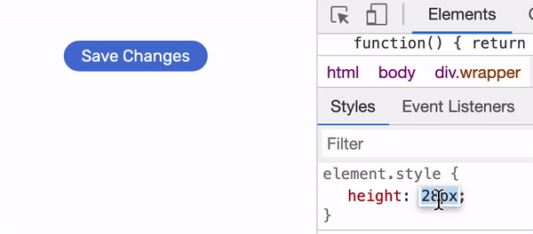 Another common issue is when the button is wrapped in a flex container, with flex-direction: row as the default. The button height will stretch to its parent height. To avoid that, we should use align-self property on the button, or align-items on the flex parent.