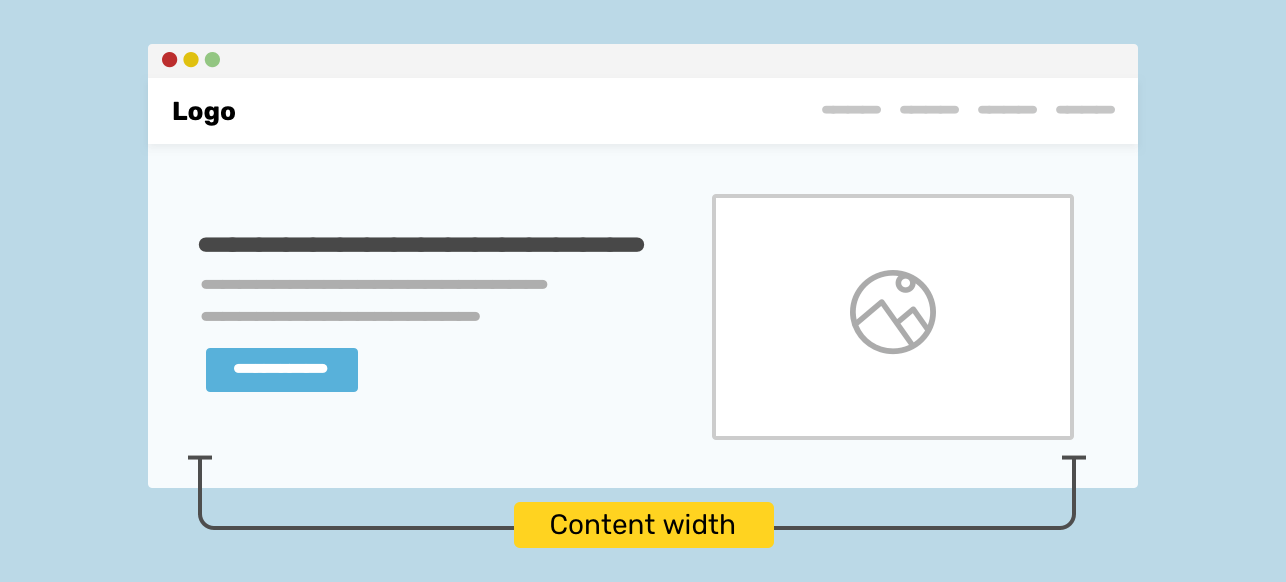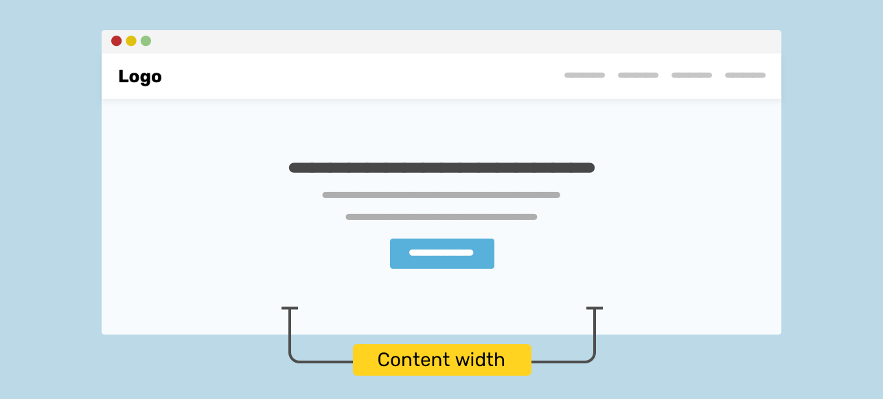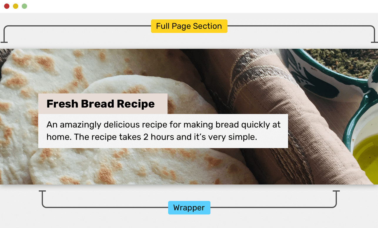 In the figure above, the section has a background image and it’s taking the full width of the viewport. The content inside is restricted by the wrapper’s width.
