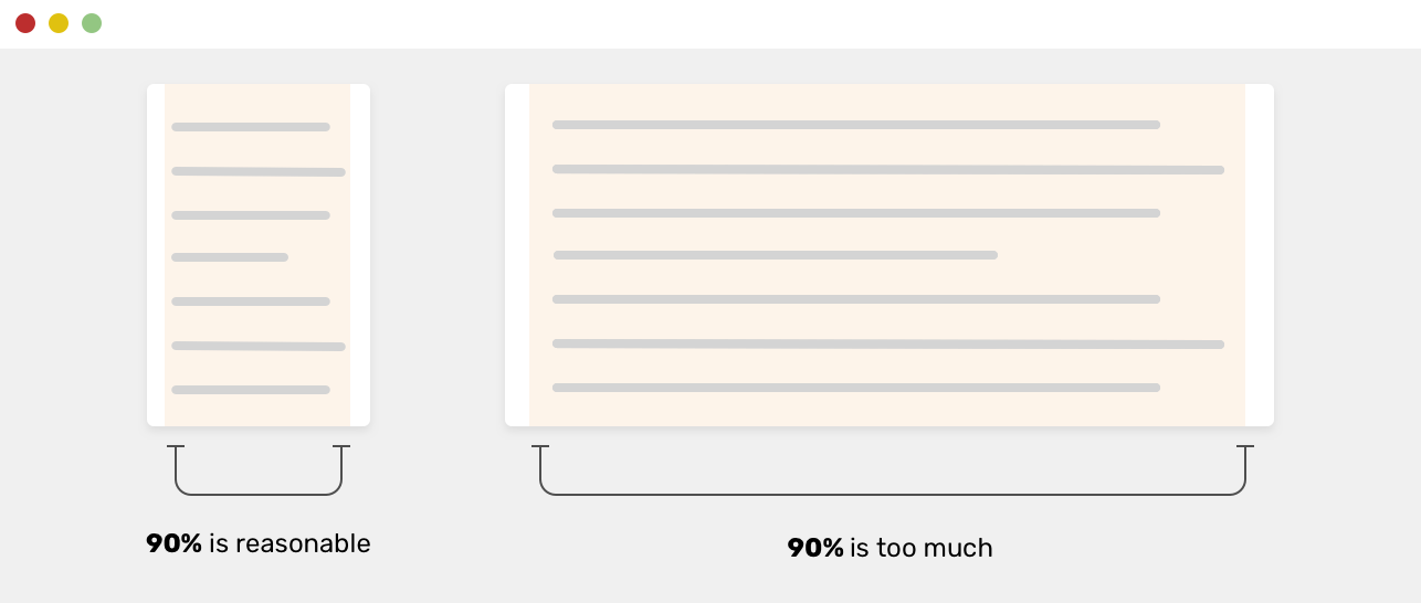 By using a percentage width, we added an extra step. We can avoid this step easily by using a fixed width value. Another solution suggested in this tweet says that we can combine width: 90% with a max-width: 1170px property.