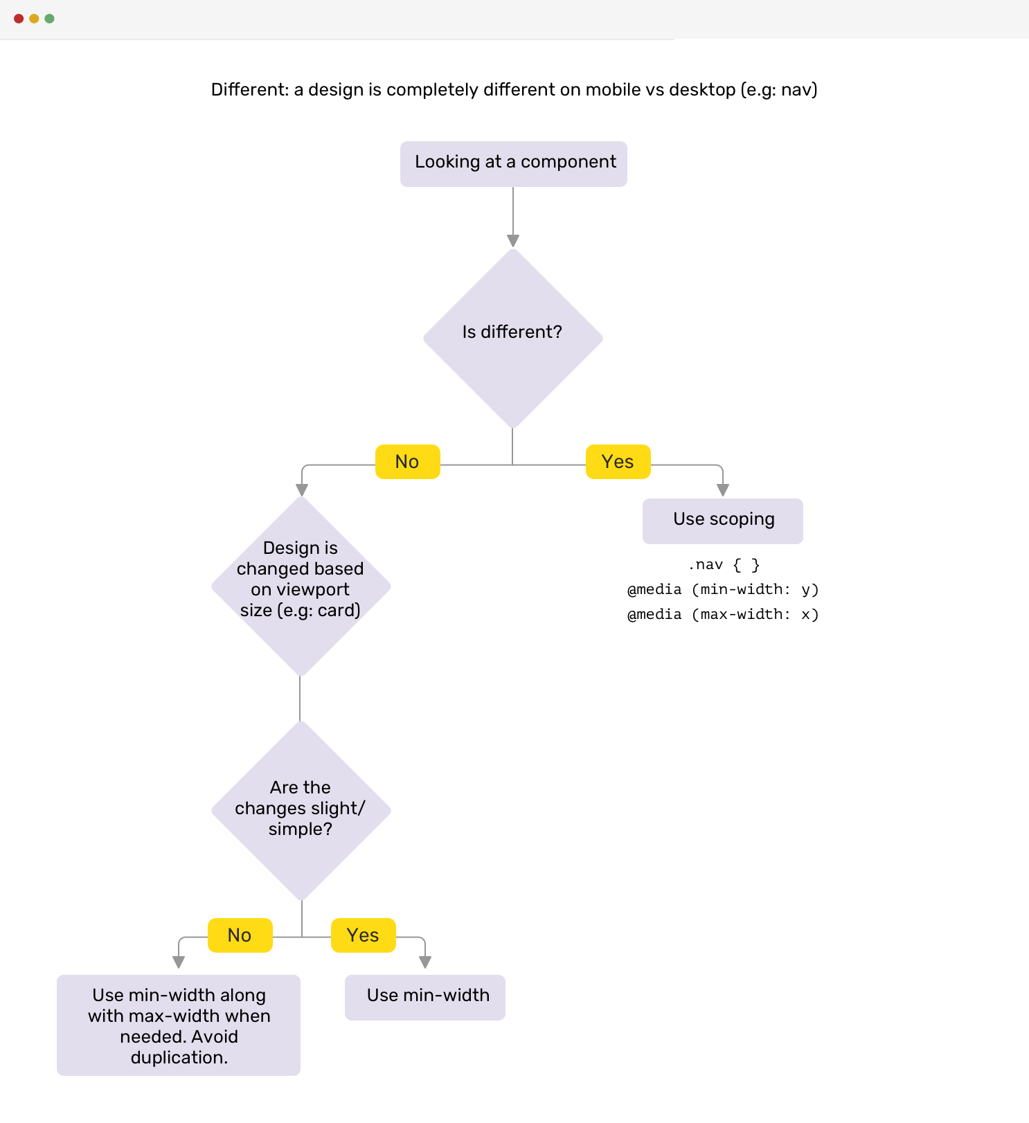 With this approach, we have fewer overrides than using the mobile-first one. Isn’t that interesting? The reason is that by using a max-width media query, we are scoping a specific design to a specific viewport width.