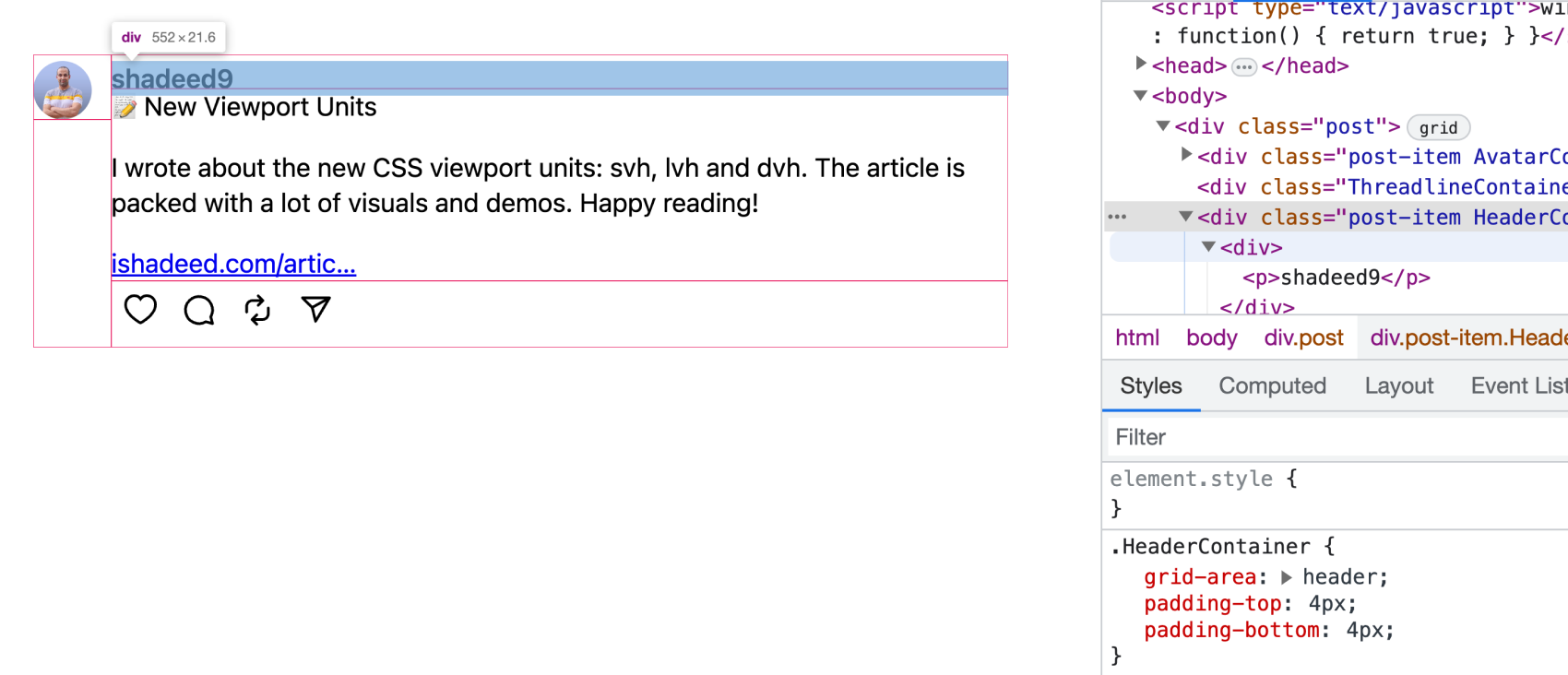 That’s it for today. I enjoyed inspecting the CSS and getting to know how the Threads team is building the product. I’m sure there are a lot of things that I haven’t noticed because this is the preview-only version on the web.