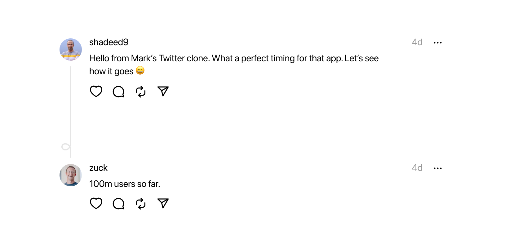 A variation is when someone replies to another.