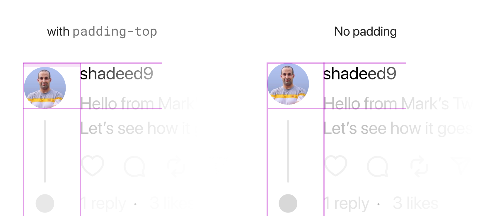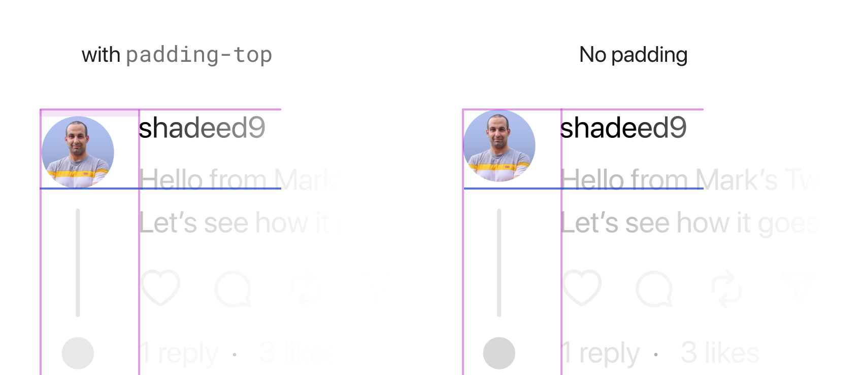 Here is a before & after look for an avatar with and without the padding-top treatment: