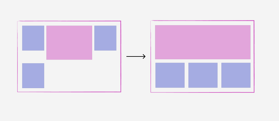 We are changing the columns and rows for the layout by just defining the grid areas. Visually, it will look like this.