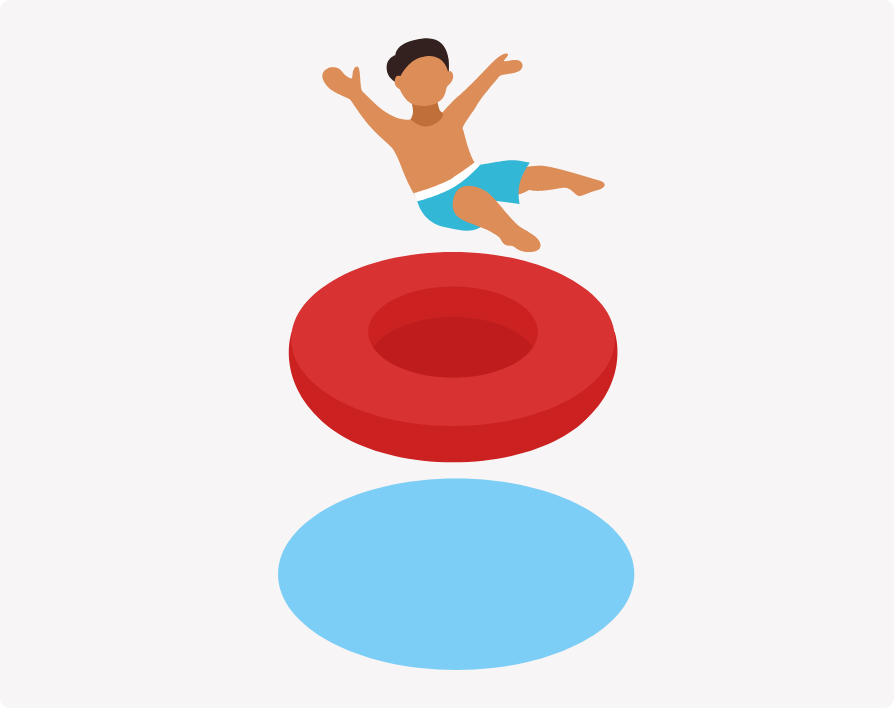 Notice that the water is on top of the ring, and the ring is on top of the boy. Why is that happening?
