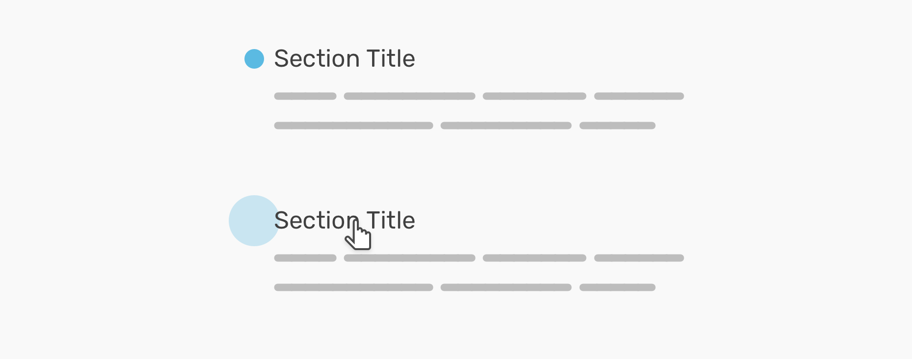 The design has a section title, with a little circle on the left side of it. When we hover on the section title, the circle gets bigger.