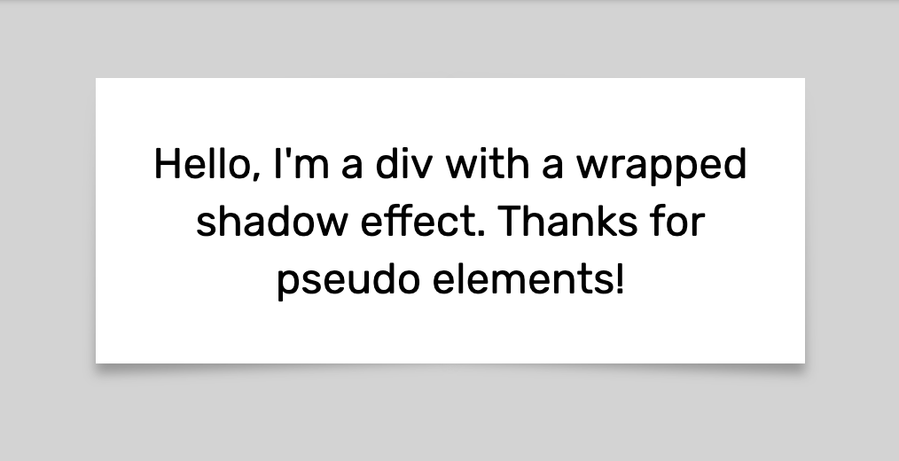 I’m not sure if the naming is correct, but this is what I got. Back in the days, I used to create a shadow that is skewed at the edges. It has a little subtle effect. Guess what! It’s possible to do them with pseudo-elements.