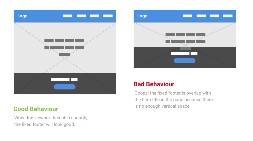 When you have a fixed footer in your design and you want it to be fixed while scrolling, you might face an issue when the viewport height is not big enough, the hero section content will overlap with the footer and the user won’t be able to read the text. So for that, we will apply the fixed thing for the bar only when the viewport height is good.
